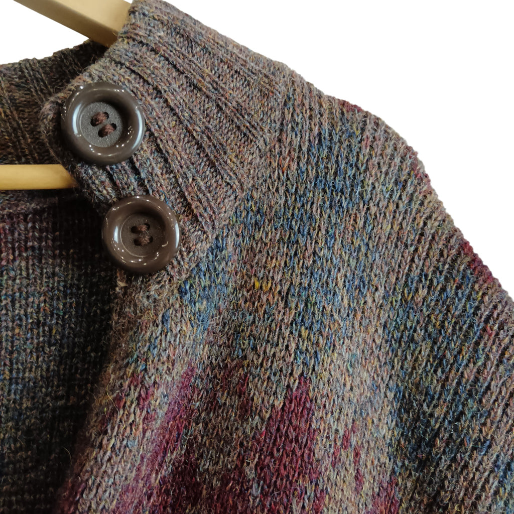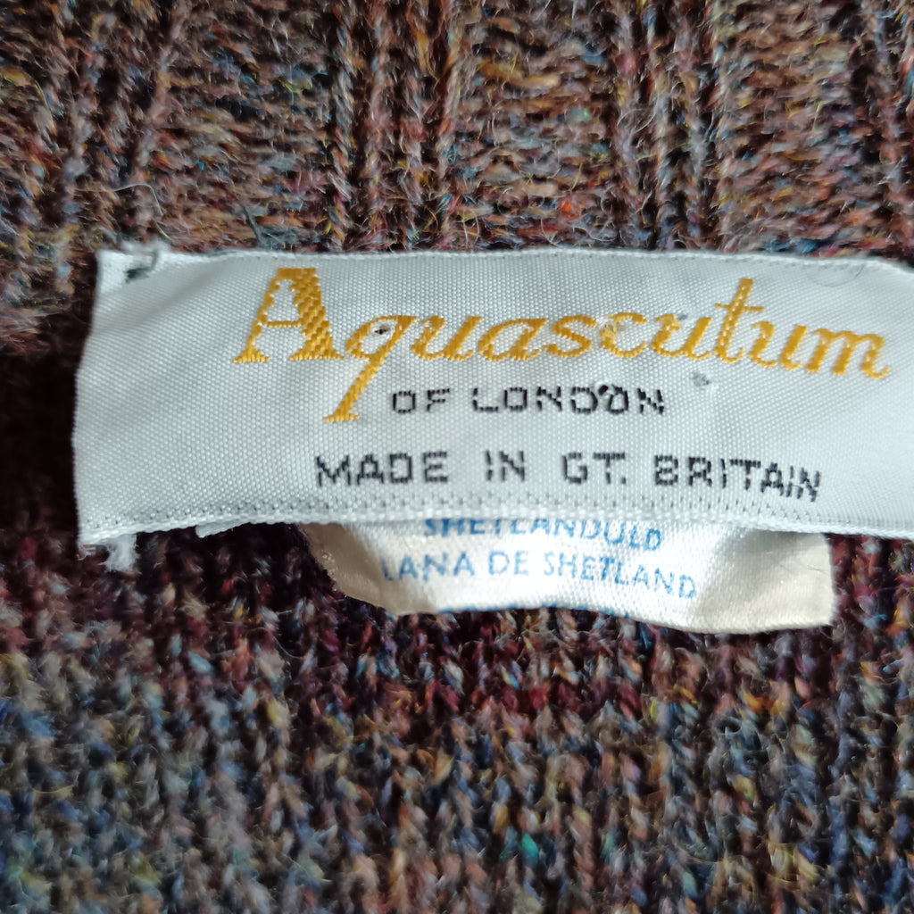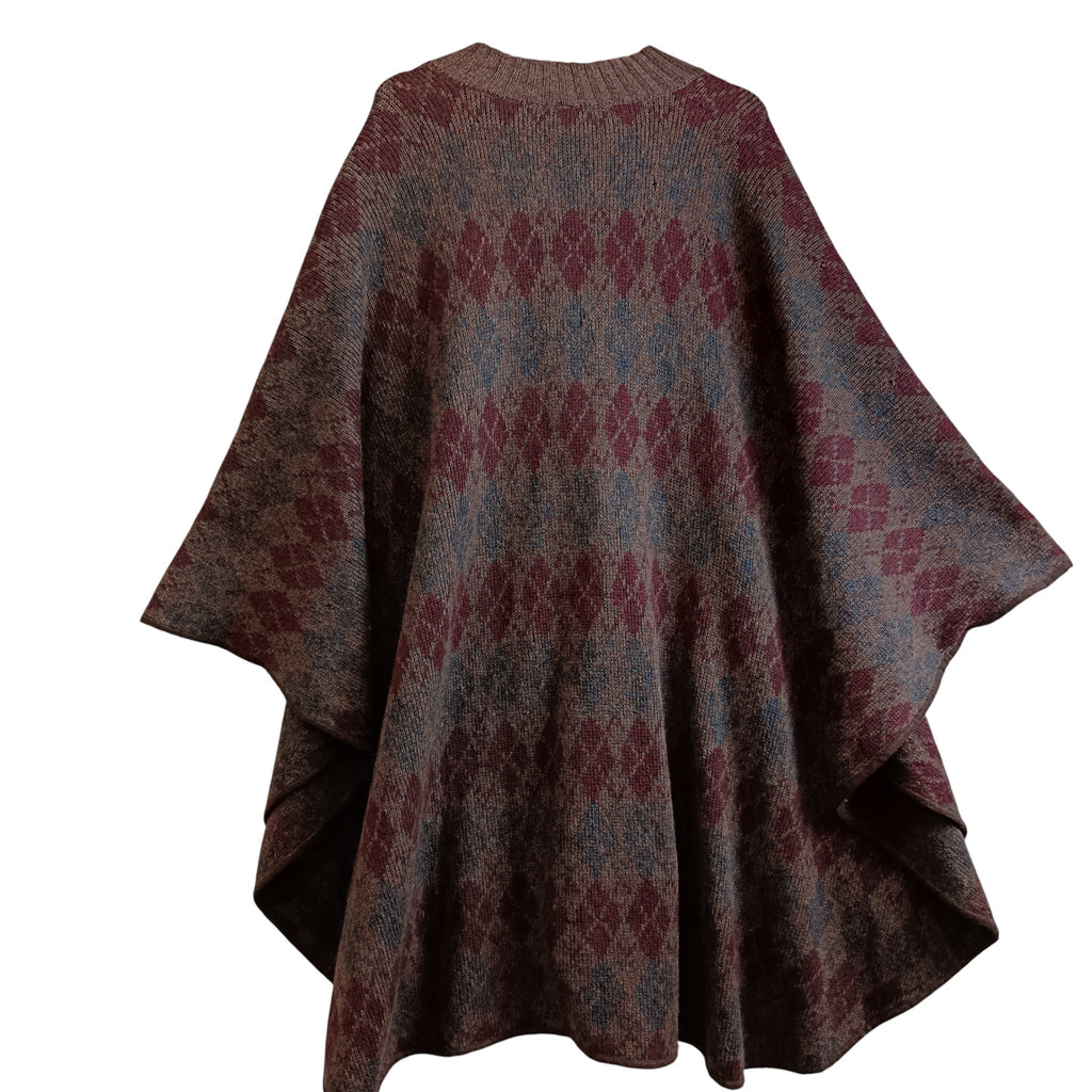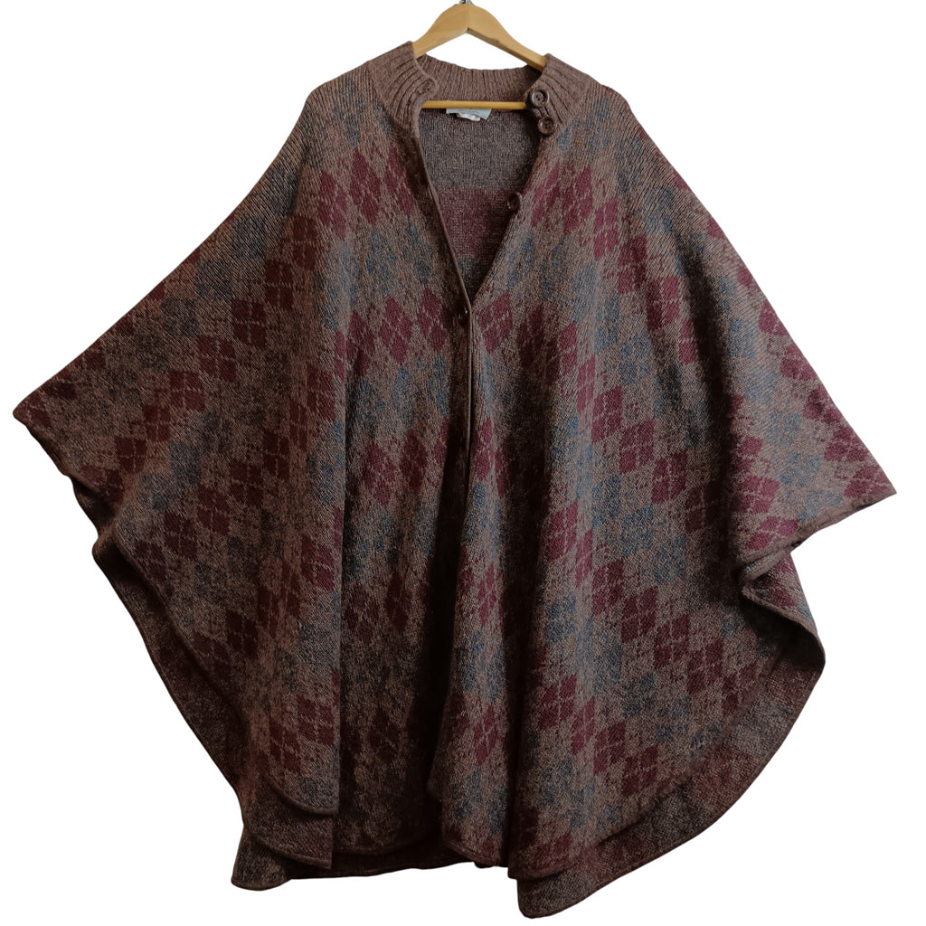 Aquascutum Shetland Wool Knitted Brown Geometric Pattern Poncho One Size Womenswear | Pre-loved