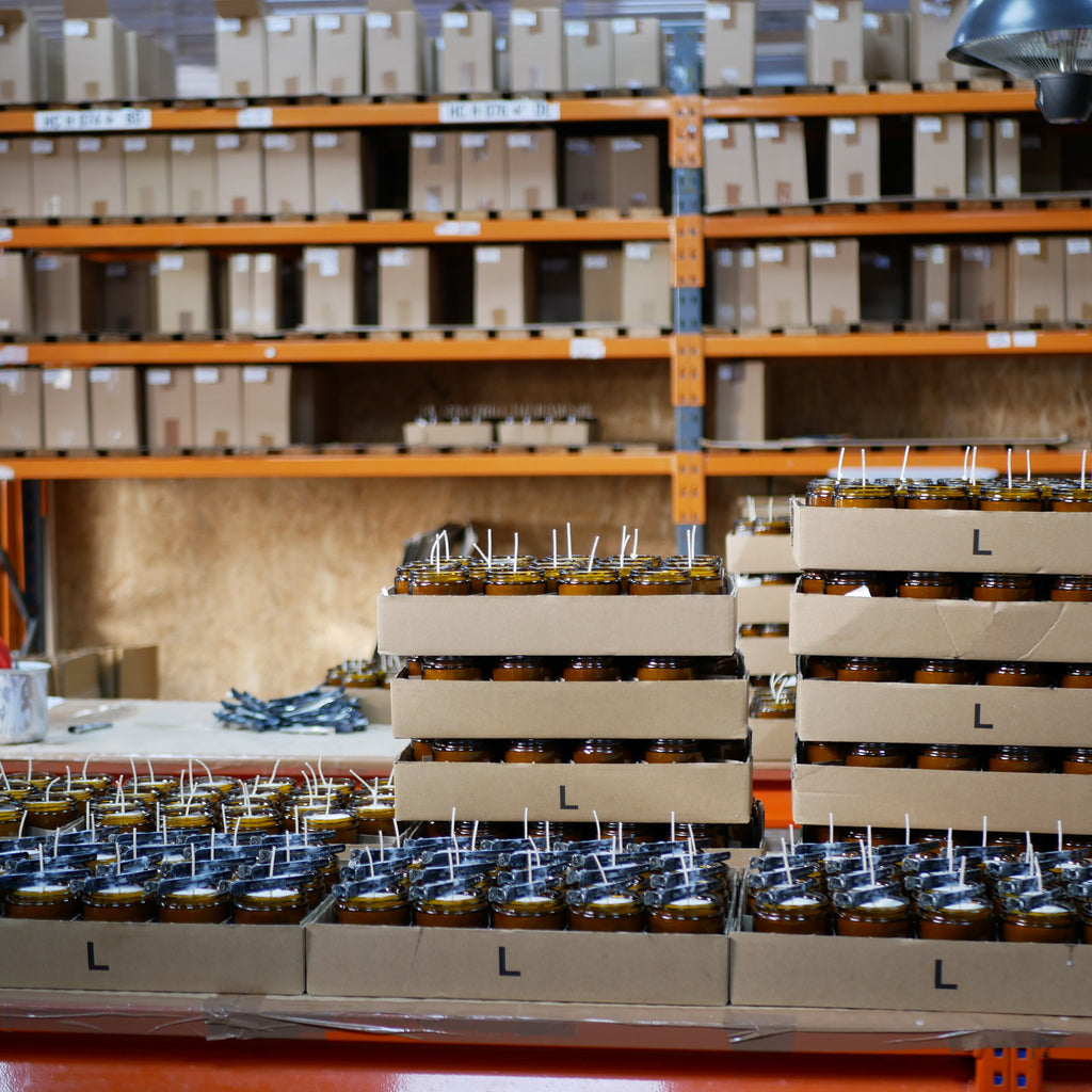 Each candle is hand poured for us in a small workshop in the heart of England. Made with a sustainable soy wax blend and high-quality fragrance oils, they are packaged in a reusable glass jar with a cotton wick.