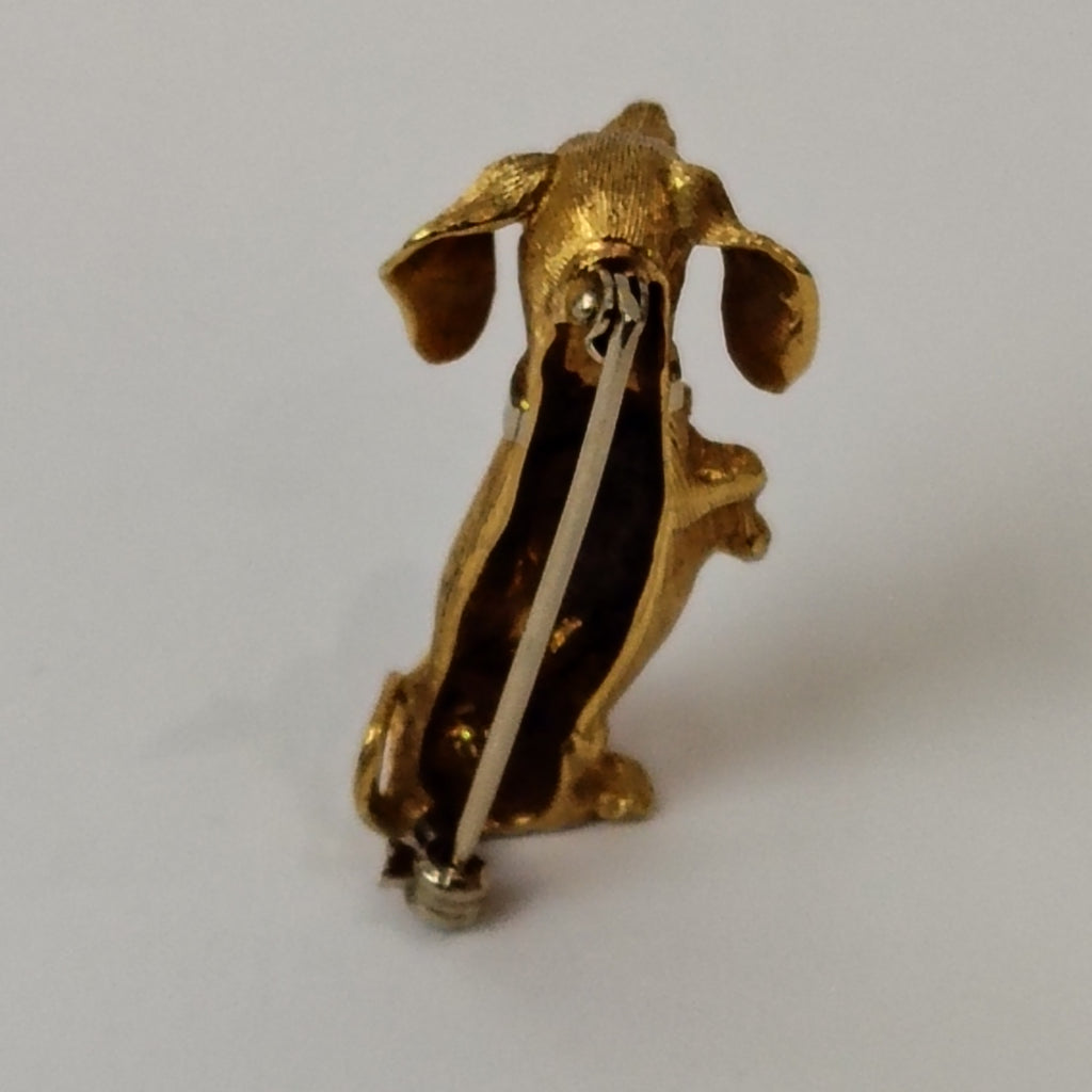 Dachshund 18ct Yellow Gold Ruby Stone Vintage Jewellery Brooch 10.2g - Preloved