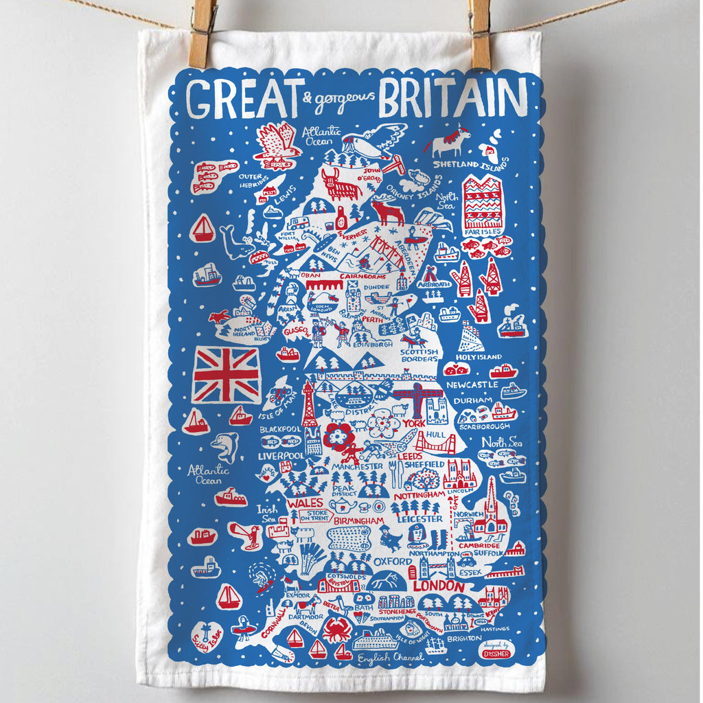 The Julia Gash collection showcases her iconic hand-drawn map illustrations, celebrating the unique character and landmarks of Great Britain and Ireland with playful, contemporary style.
