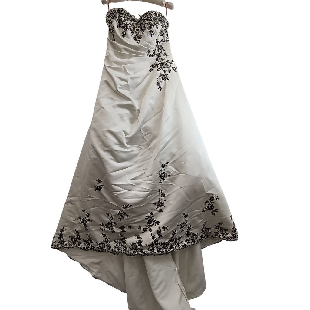 Ivory With Black Embellishment Striped Wedding Dress UK 12- Womenswear | Pre-loved
