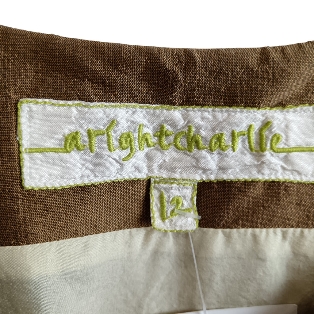 Kay Unger New York Pure Silk Brown Striped Dress With Bolero Mother of Bride Outfit UK 10-12 Womenswear | Pre-loved