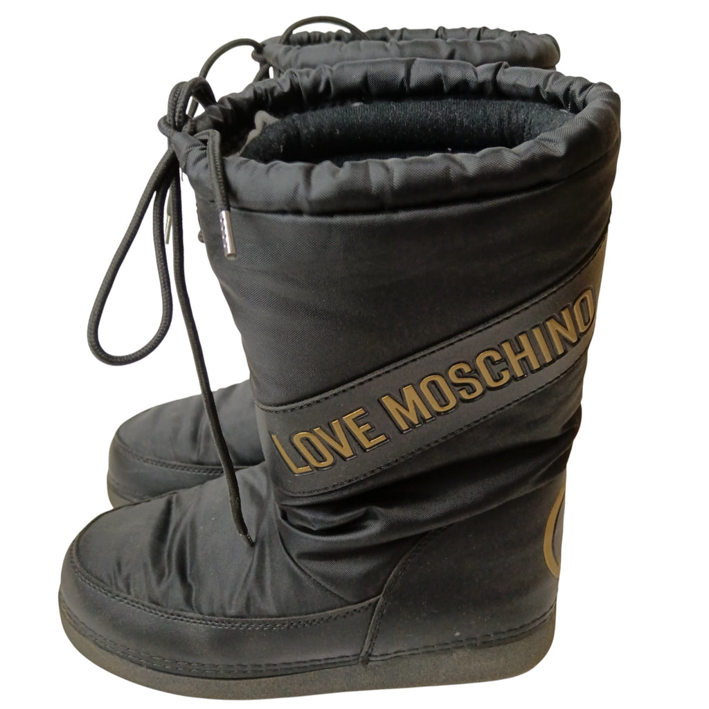 Love Moschino Black Snow Boots Front Heart Women's UK 4-5 Womenswear | Pre-loved