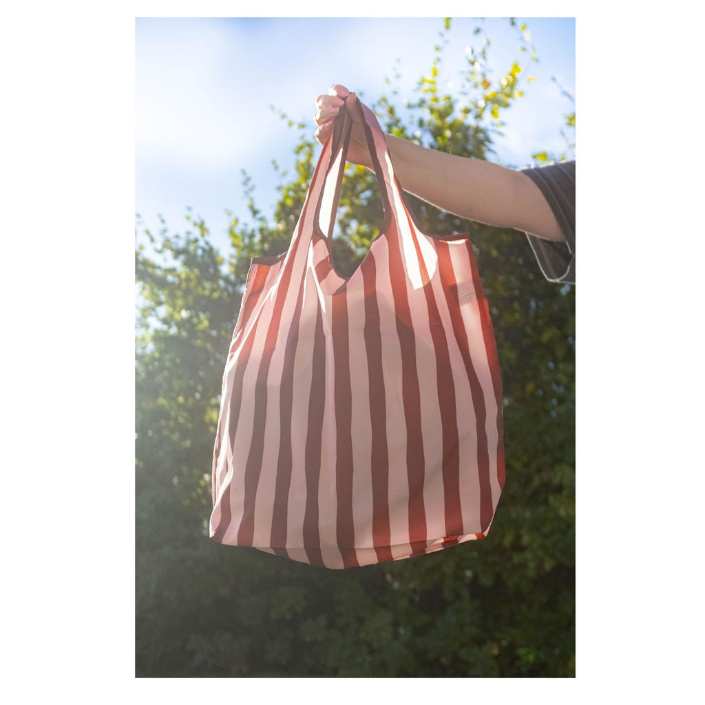 This practical packable bag is the perfect lightweight item to carry with you for when you need an extra shopping bag. Made from 3.5 recycled plastic bottles it features colourful stripes and is exclusively available from British Red Cross.