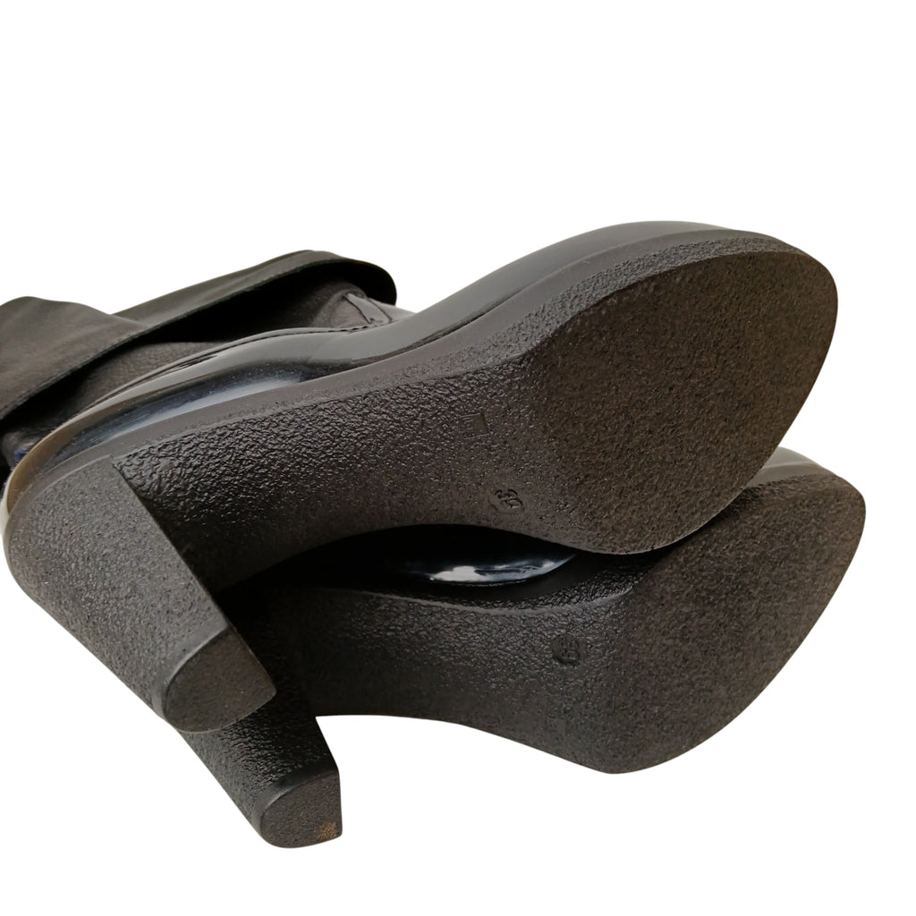Sage Wilson Vicky Black Leather PVC Women's Boots Size 40 Fold-Over Cuff BNWT Womenswear | Preloved