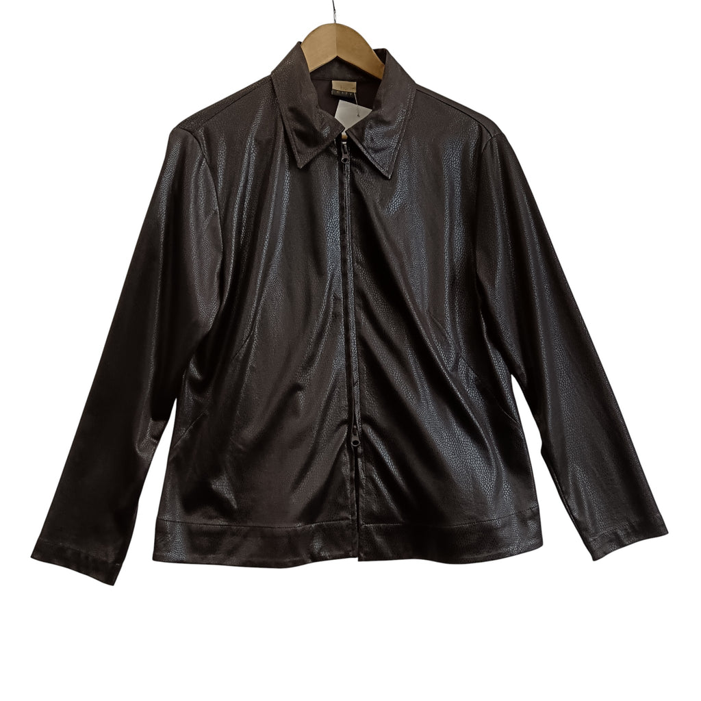 Tru. CITY Dark Brown Animal Pattern Zip Up Women's Top/ Jacket UK 14 -Womenswear | Pre-loved