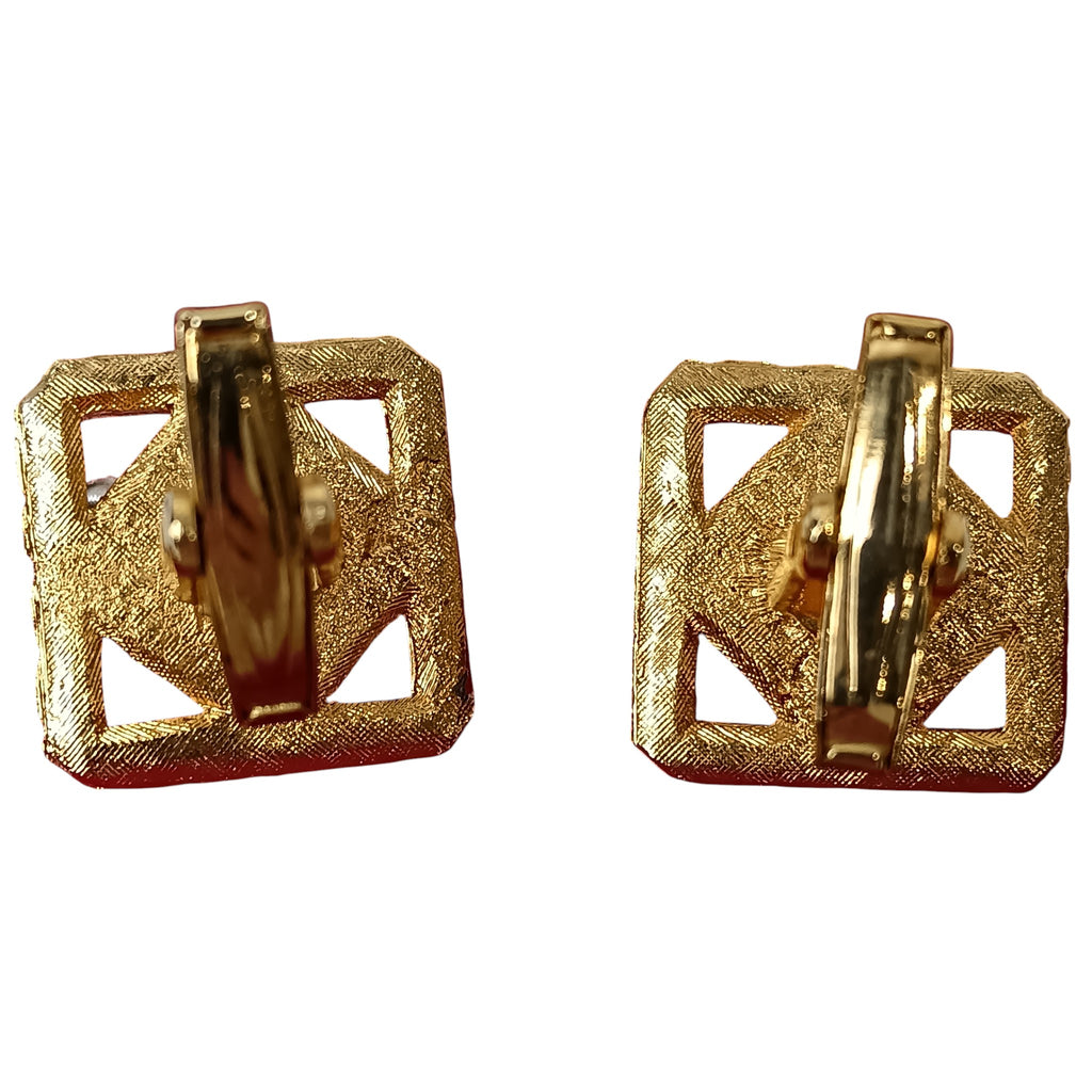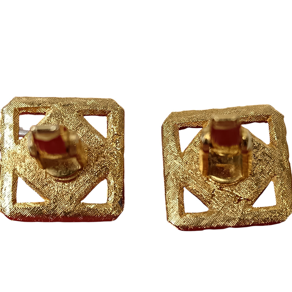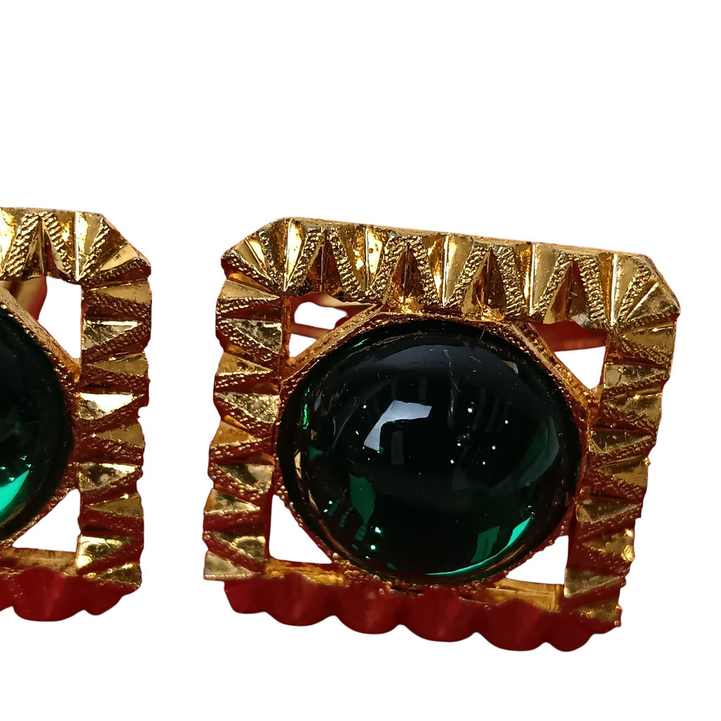 Vintage Gold Plated Squared Diamond Cut Green Stone Cufflinks Menswear | Preloved